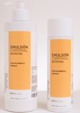 Esta Emulsión corporal con aceite de zanahorias y beta caroteno, posee efectos nutritivos y humectantes.